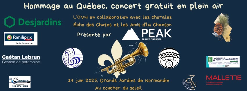 Le 14 juin prochain, venez vivre un moment musical unique aux Grands jardins de Normandin, alors que l’Orchestre à Vents de Normandin, accompagné des chorales Écho des Chutes et Les Amis d’la chanson, vous offriront un concert extérieur gratuit.